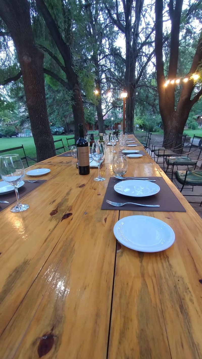 Ofrecemos un menú de tres pasos orientado a los clásicos de la cocina argentina o podes pedir a la carta si tuviste un gran almuerzo en las bodegas. Durante el verano compartimos la cena en nuestra mesa exterior con todos los comensales, es casi seguro que vas a conocer gente de otros lugares y practicar otros idiomas. Como no podía ser de otra manera, una vez a la semana tenemos como menú especial el clásico asado Argentino, vas a poder experimentar todo el proceso de este gran ritual.